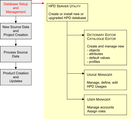 Database Creation • Create new HPD database • Upgrade existing schema | HPD Server | HPD Server is used to create or upgrade an HPD database schema. |