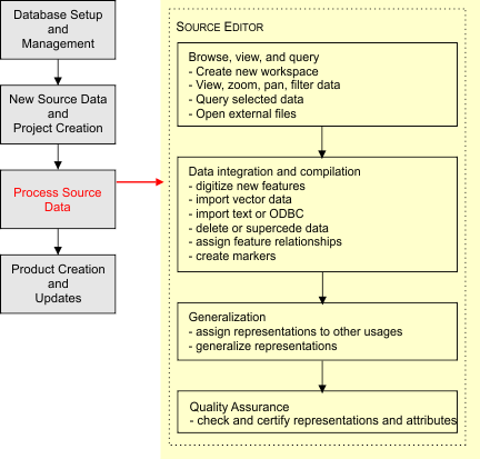 Using Other Data Files • View external datasets • Grab external data • Import Selected Objects • Object Import Utility | Source Editor | Source Editor lets you view external vector and raster datasets with the HPD database. It can also create new data interactively by grabbing features from external vector datasets or by importing data using various HPD tools. |
