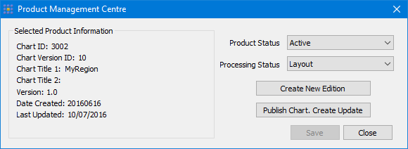 Processing Status | Processing status must be applied in the order listed/ You cannot skip a status nor can you return to a previous status. The items in the list depend on the current processing status. For example, if the current status is Layout, you can only select Compilation from the list. Only certain operation commands are available at each status level. • • Create New Edition • Publish Chart. Create Update • • Create New Edition • Publish Chart. Create Update • • Create New Edition • Publish Chart. Create Update • • Create New Edition • • None |