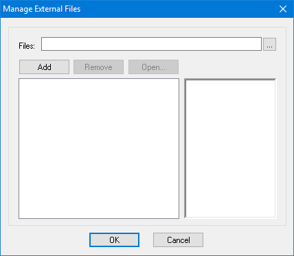 One or more external files. | 1. Select the attribute. 2. Click browse ( The Manage External Files dialog box is displayed.