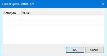 Spatial: To apply global spatial attributes: 1. Click browse (...). The Global Spatial Attributes dialog box is displayed.