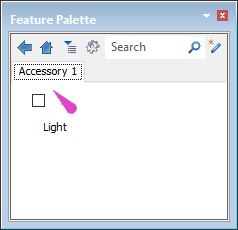 From catalogue | 1. Select the feature icon in the catalogue. 2. Right-click and select Copy from the pop-up menu. 3. In the Accessory tab, select Paste. |
