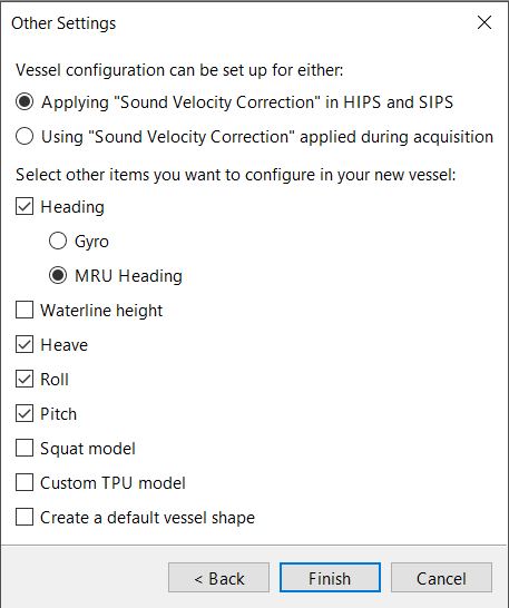 CARIS HIPS and SIPS Help : Vessel Editor : Vessel Editor : Create a New Vessel File with the Wizard : Other Settings