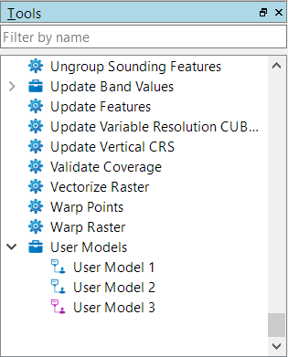 Also, when that model is saved, it will be added under the User Models category in the Tools list with the Python process icon rather than the standard User Model icon (