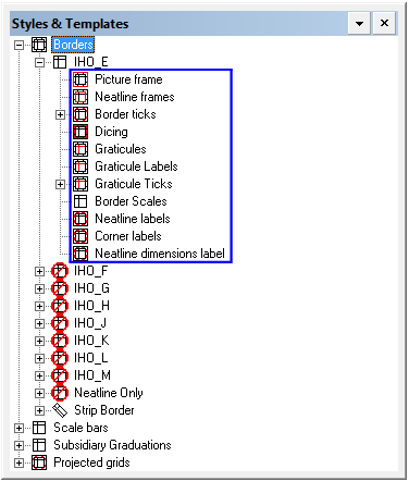 Some components have sub-layers. For example, there are four different types of border ticks and you can define them all individually.