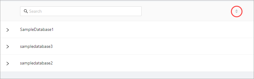 By default, the database list is sorted according to the date they were created or edited. The arrow buttons at the top of the list can be used to sort the list in ascending or descending order if desired. Clicking the arrows a third time will cancel the sorting and reorder the list according to the modified date.