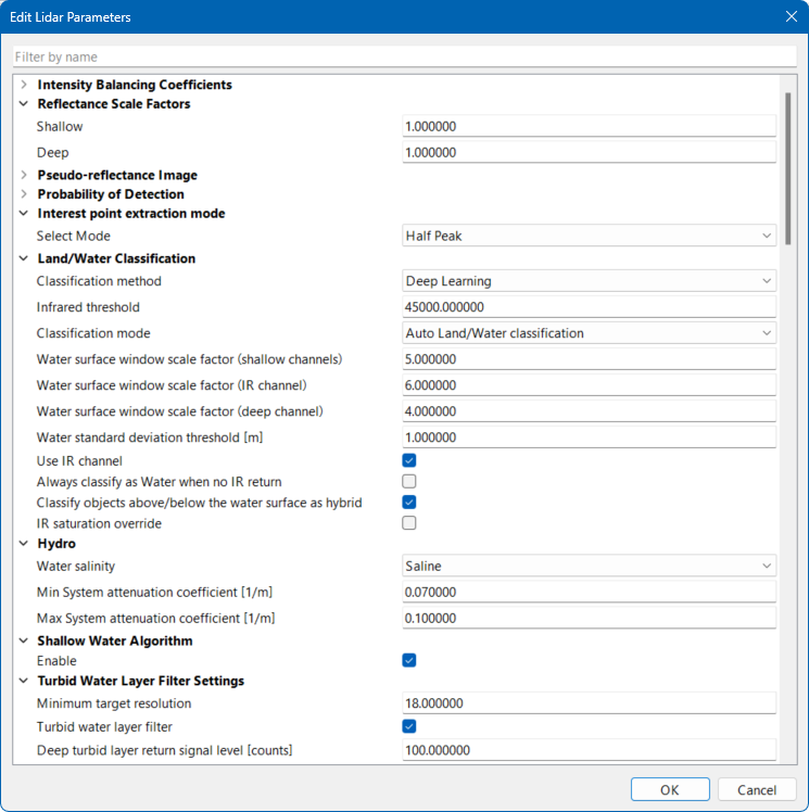 Pop-up | survey > Edit Lidar Parameters (Project window) |