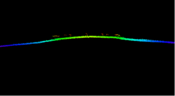 Pre-pulses occur over the laser illuminated area when there is contrasting reflectance (an example would be white paint marks on a runway). The waveform peak detection algorithm detects these peaks and results in points being incorrectly reported above the actual ground.