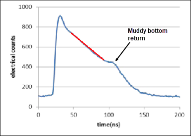 Superficial returns can sometimes be observed in all SuperNova Shallow channel waveforms as a result of a secondary reflection in the fibre bundle and follows the actual pulse that has a relatively high amplitude (usually greater than 30,000 counts). The points from these detected returns will be automatically rejected by this filter. The reflection pulse amplitudes are a scaled version of the true pulse amplitudes and occur after a certain time delay relative to a true pulse. | |
