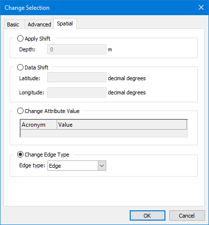 Apply Shift | Apply depth shifts to soundings. The shift value can be negative or positive. 1. Enable Apply Shift. 2. Type the shift in metres in the Depth field. |