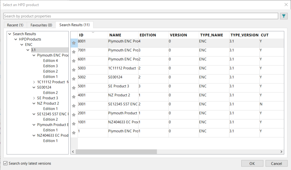 Search only latest versions | On: Only the most recent versions of the products are listed. Off: All versions of the products are listed. |
