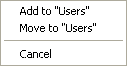 • Users layer: A user is copied to the target user group but is still listed in the layer.