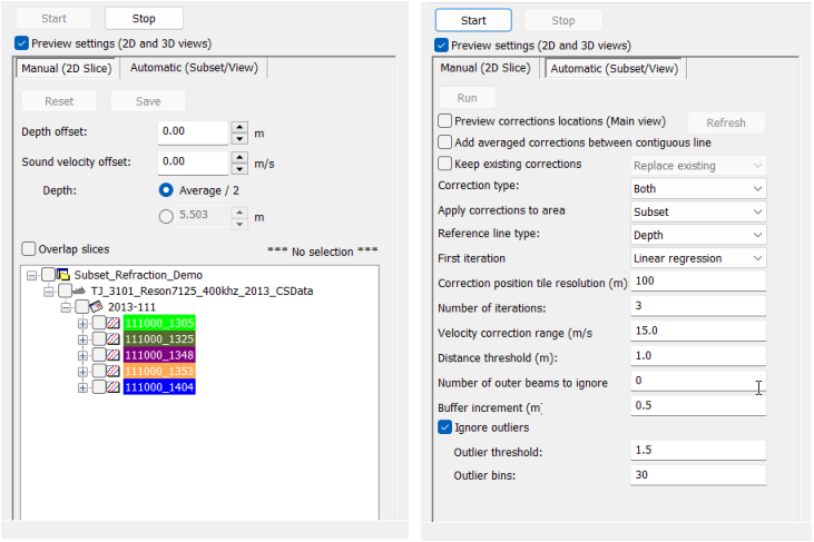 • Subset slice corrections: Depth/sound velocity value corrections that were added manually.