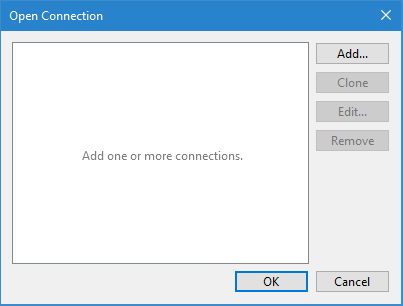 The Open Connection command uses the following dialog box.