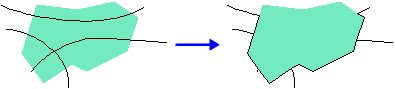Merge edges on intersecting lines or areas. One line or area is fixed; edges on other lines or areas will be merged with the fixed feature if they fall within a defined tolerance. Only the fixed feature is selected.