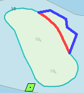 • A depth contour (DEPCNT) that had its depth value changed to 2 metres.