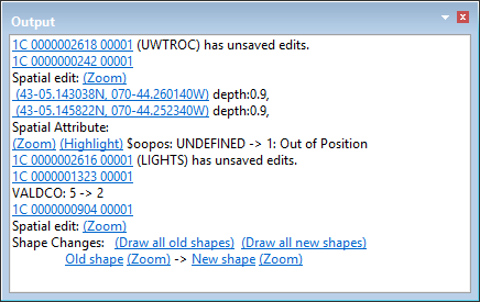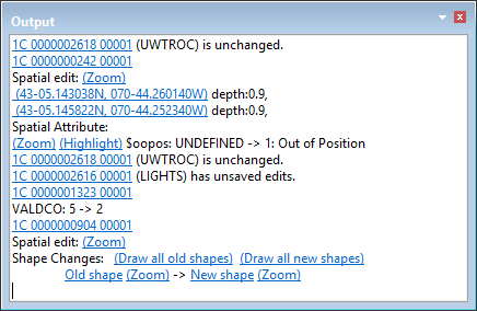 Clicking on the various links will superselect the appropriate feature, zoom in, or display the old and new versions, as appropriate.