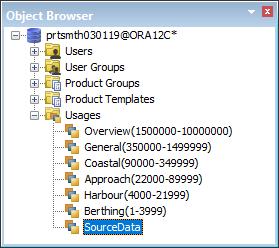 The hierarchy does not have to be based on scale ranges. Some organizations may, for example, use one or more usages for storing source data (not determined by scale), and other usages for creating product data (which will be based on scale). In this case, the scale-less source usages would be placed below the scale-based product usages in the hierarchy.