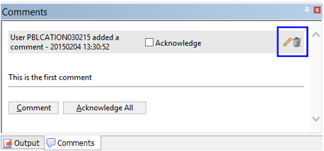 Acknowledge | On: Someone has acknowledged the comment. You cannot edit or delete an acknowledged comment. Off: The comment has not been acknowledged. |
