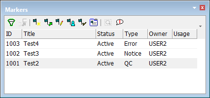 At the top of the window is a toolbar containing commands relating to markers. You can also right-click to select commands from a pop-up menu
